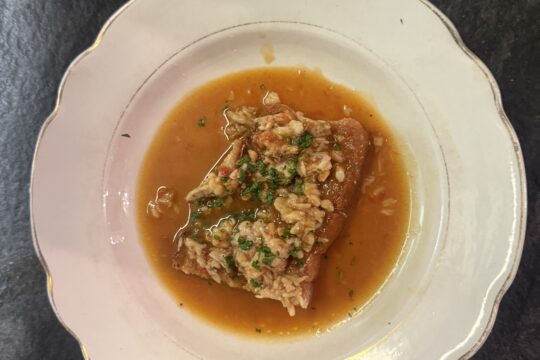 La Garmugia è una zuppa che prepariamo secondo la ricetta, poi viene resa cremosa e accompagnata dal pescato del giorno....nell'articolo troverai aneddoti e la ricetta originale...noi l'abbiamo adattata alla costa 🙂